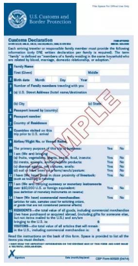 埃及海关申报表