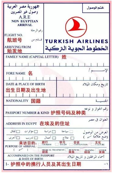 埃及入境卡